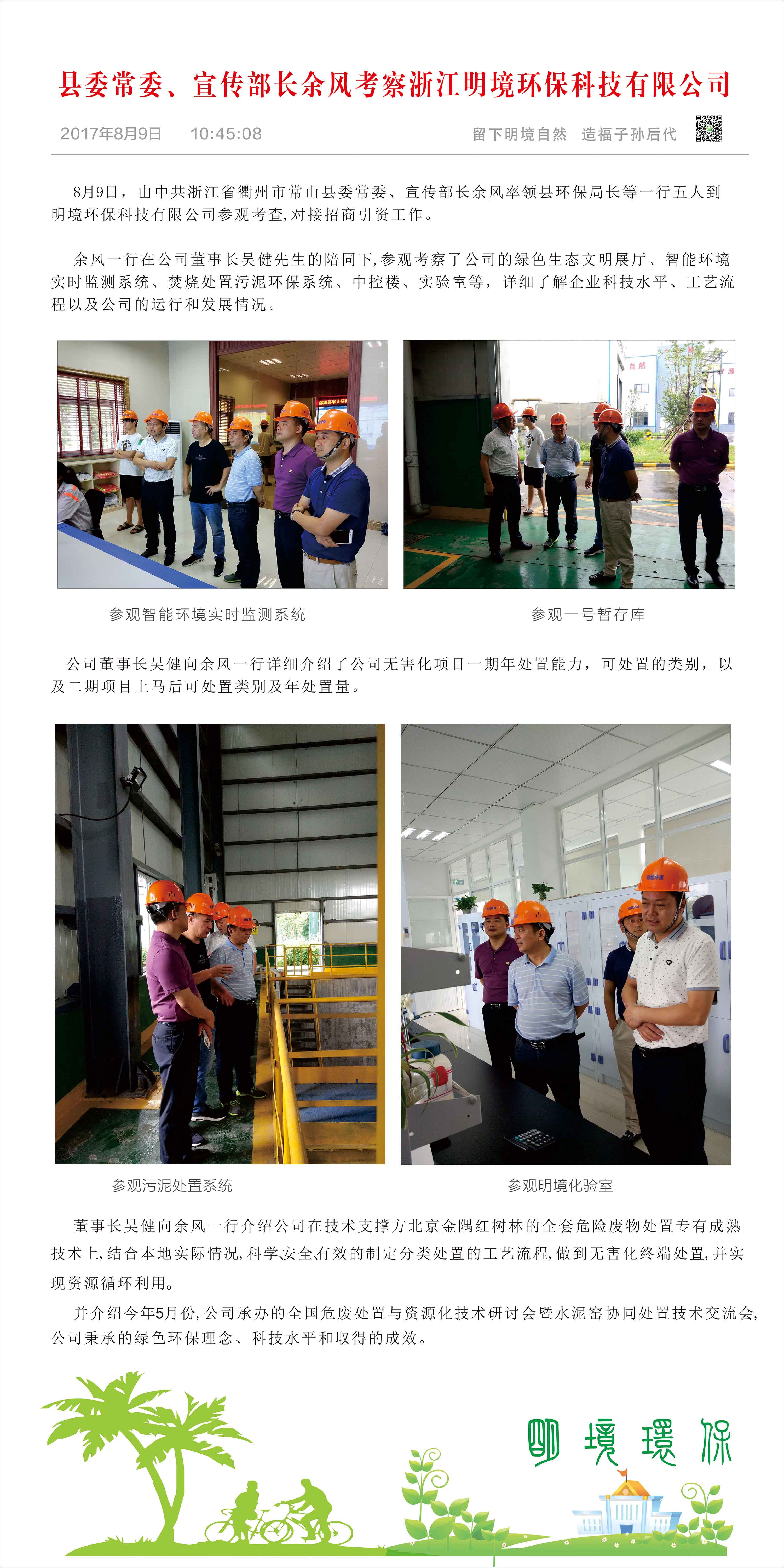 常山縣委常委、宣傳部長余風(fēng)率隊到明境公司參觀考察